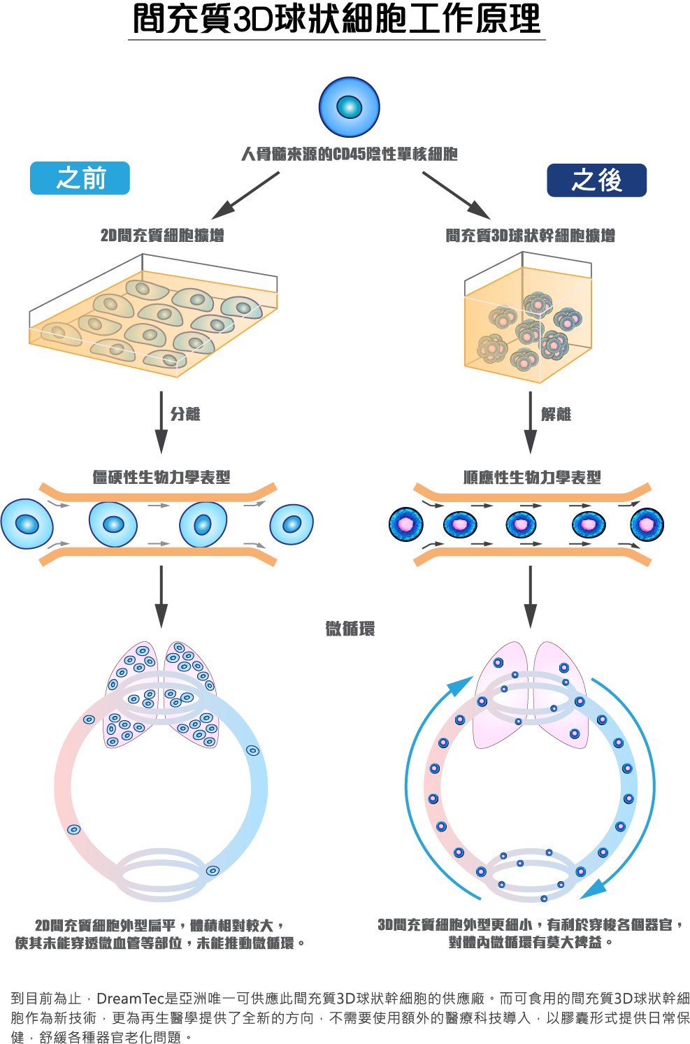 *** 優質的間充質3D球狀幹細胞提取物 + 珍貴的NMN *** 間充質3D球狀幹細胞有強大的組織修復能力,有助修復身體細胞(包括身體心、肝、脾、肺、腎等重要器官)、血液和免疫系統。NMN可為身體轉化成所需的NAD+,活化體內細胞,有助激活身體機能,令身體保持青春活力,達到更佳的逆齡功效! 3D球狀幹細胞有更強的多功能性: - 可以分化成更多不同類型的細胞·而且表現出更貼近正常組織器官的功能。 - 增殖能力高,釋出更多修復身體的細胞因子·功能性更強。 - 2D幹細胞扁平的形態令其在體內環境上有很大局限性·而3D球狀幹細胞在生長方式、形態、基因表達及生理條件上更接近人類體內環境。